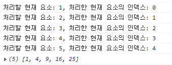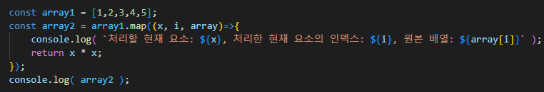 console.log( `처리할 현재 요소: ${x}, 처리한 현재 요소의 인덱스: ${i}, 원본 배열: ${array[i]}` );